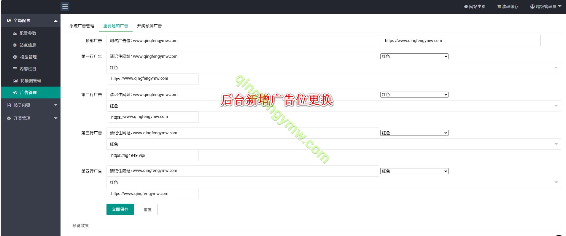 - 新增开奖预测区后台文字广告替换功能