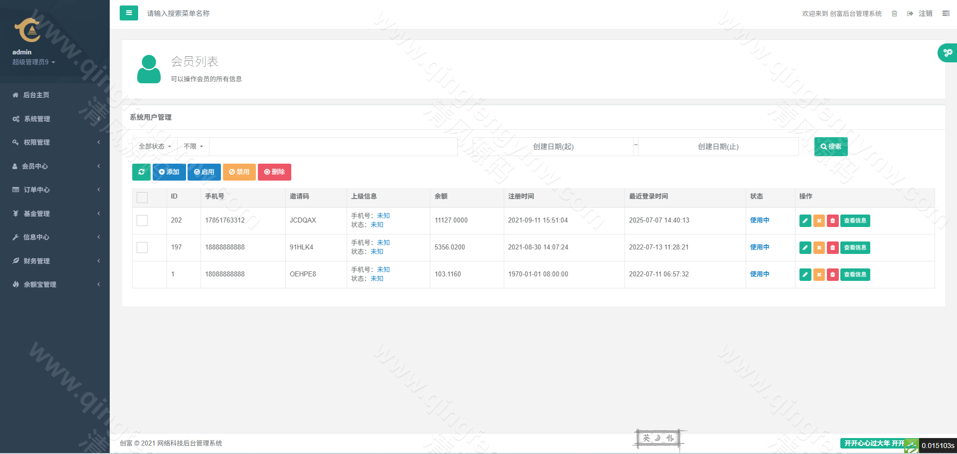 用户与资金中枢:全面管理会员信息、多级实名认证审核、处理充值提现申请、监控所有资金流水。