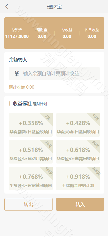 零钱增值工具:用户可将账户闲置资金一键转入,享受高于传统银行活期存款的稳健收益,实现资金的有效利用。