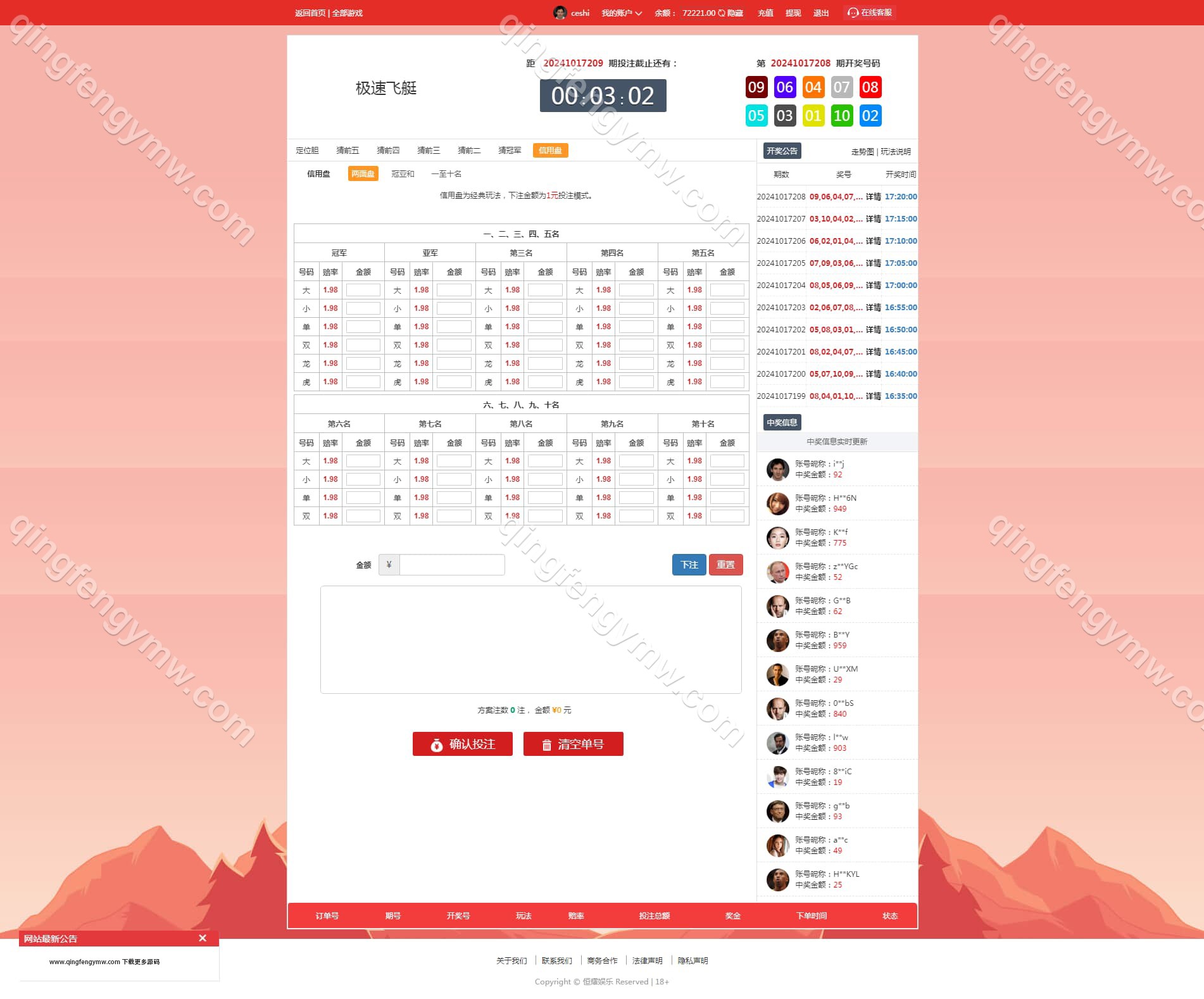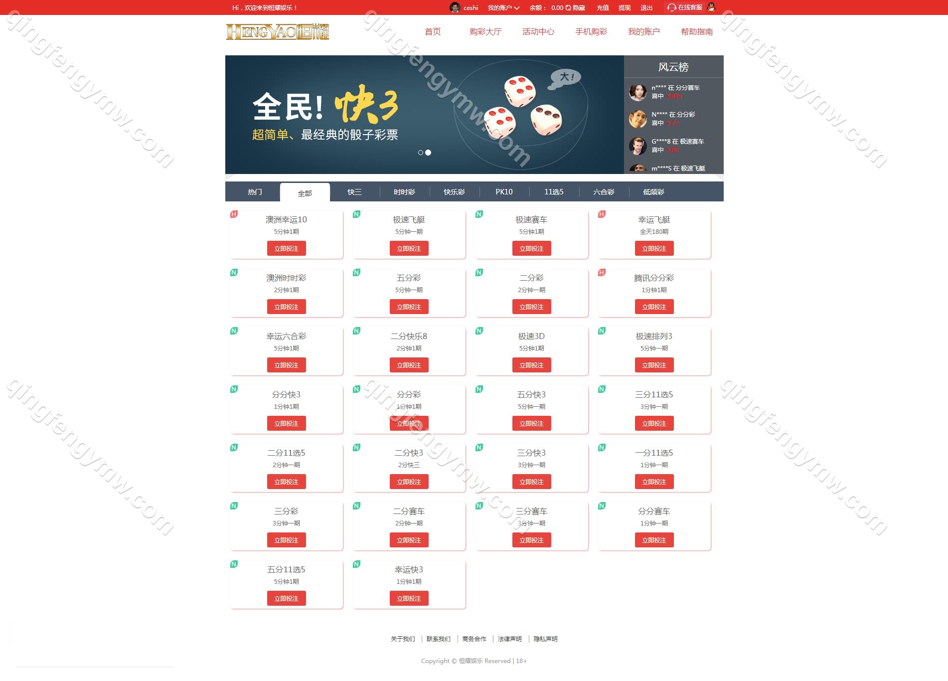 丰富彩种库:新增时时彩、赛车、快三、飞艇、六合彩等多种游戏,后台可自由开启