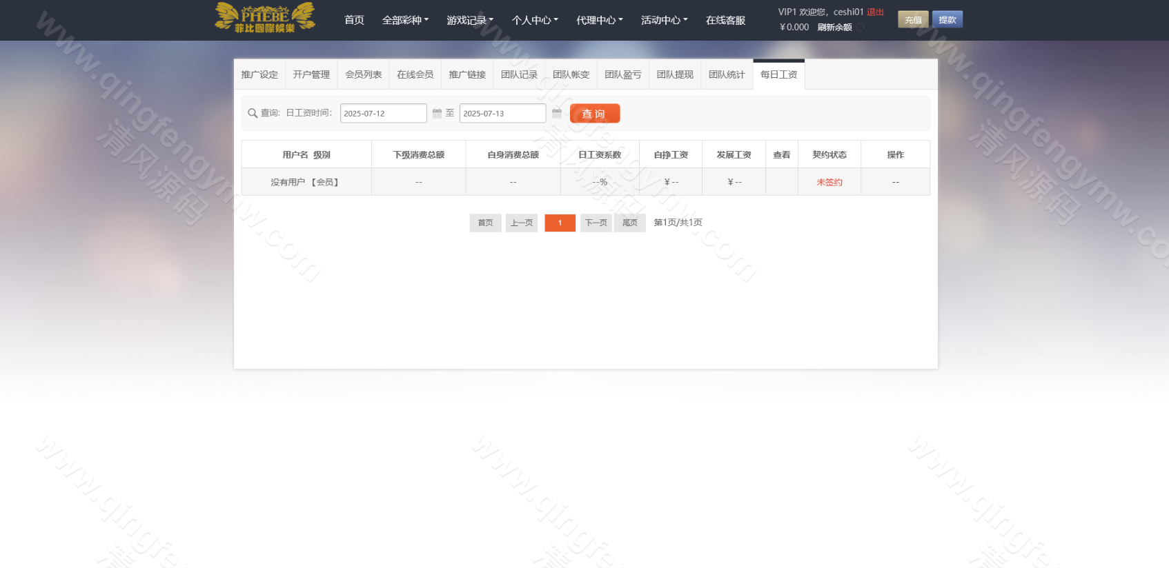 日工资分红:根据下级团队投注流水,按日自动计算并发放佣金。