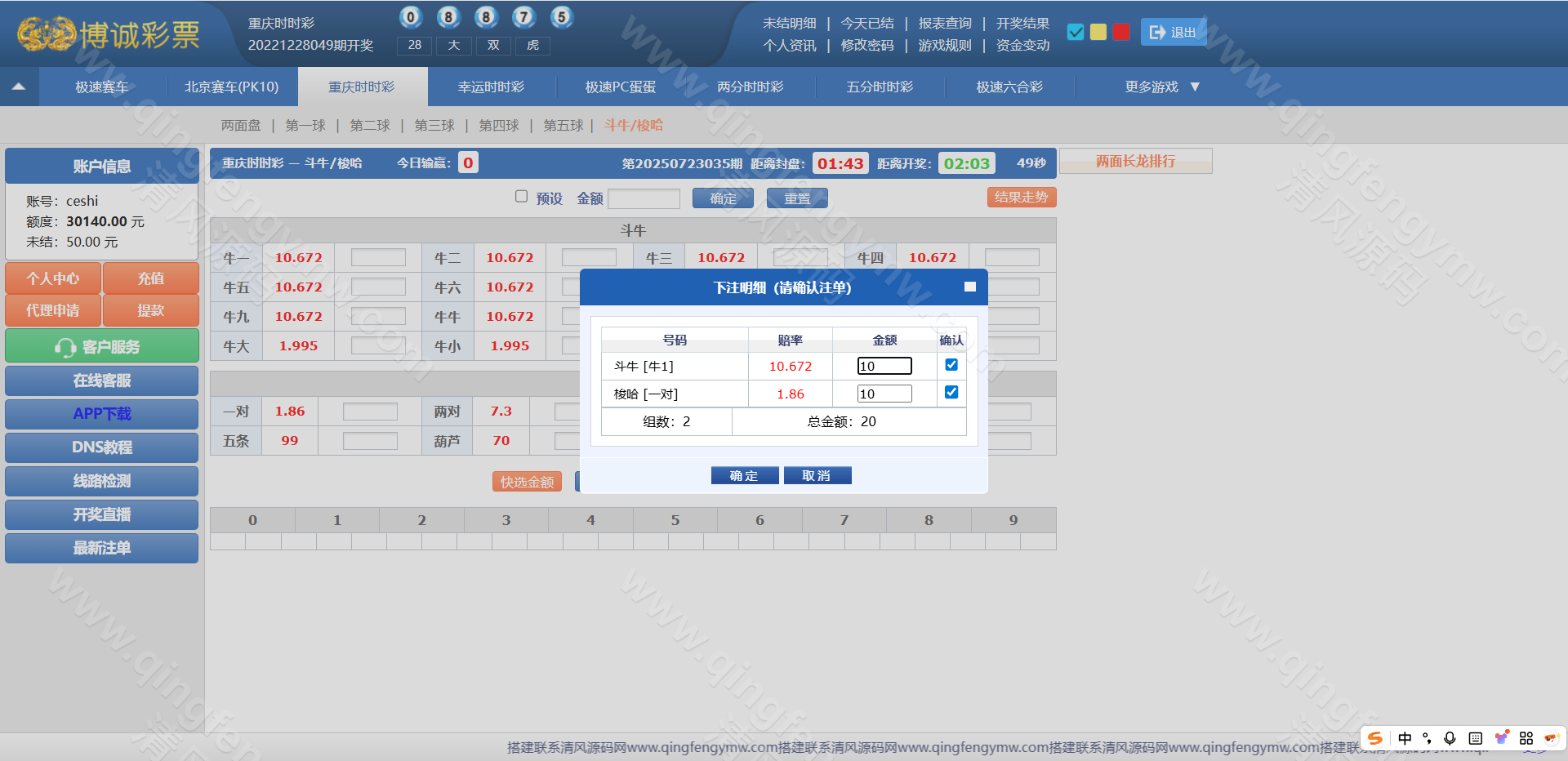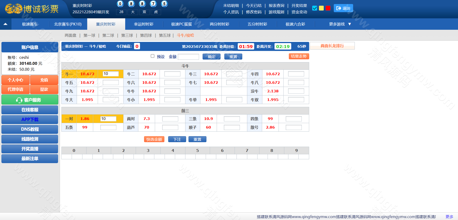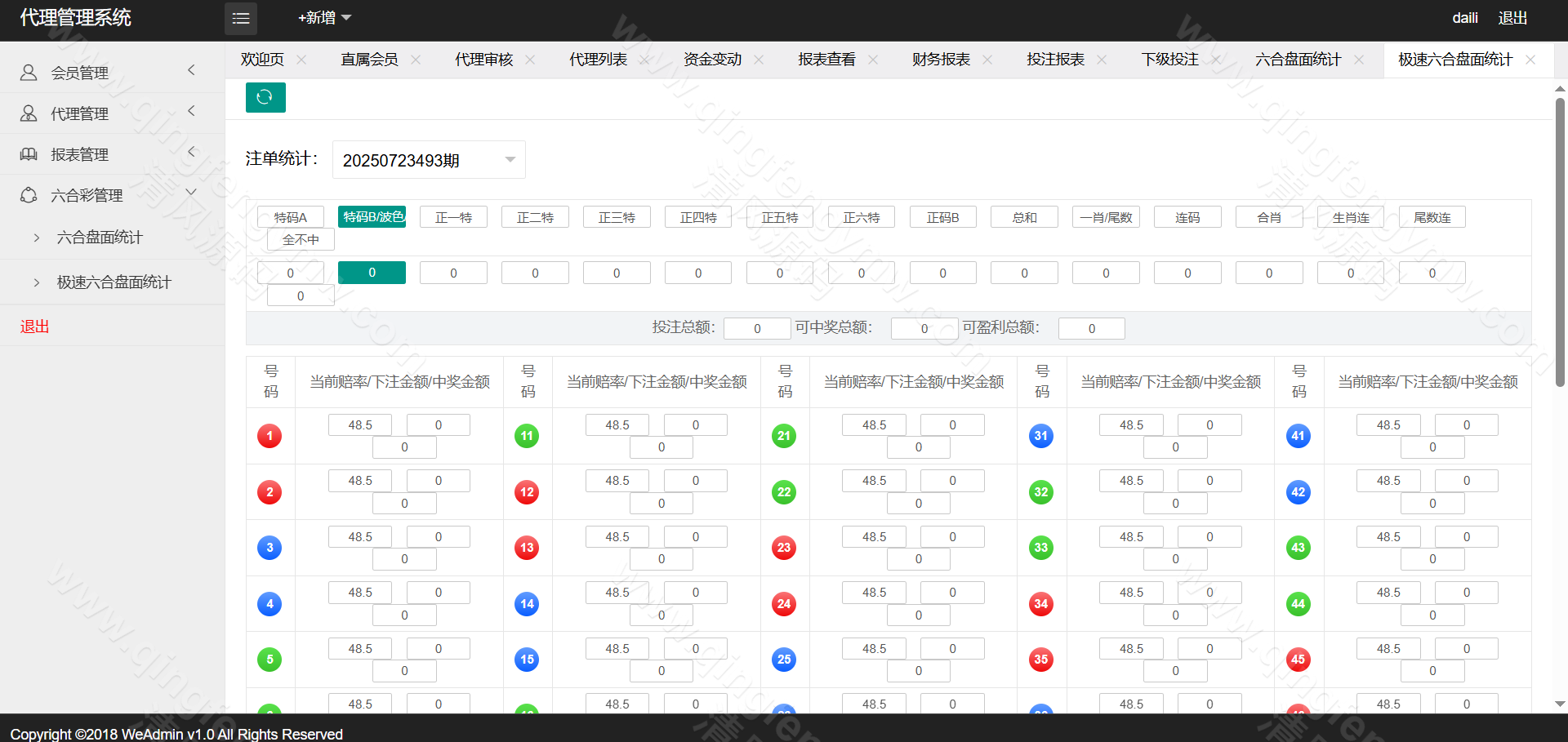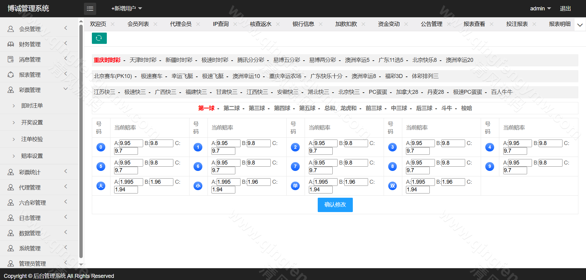 访问后台,配置AB盘开关、各彩种赔率及信用规则。