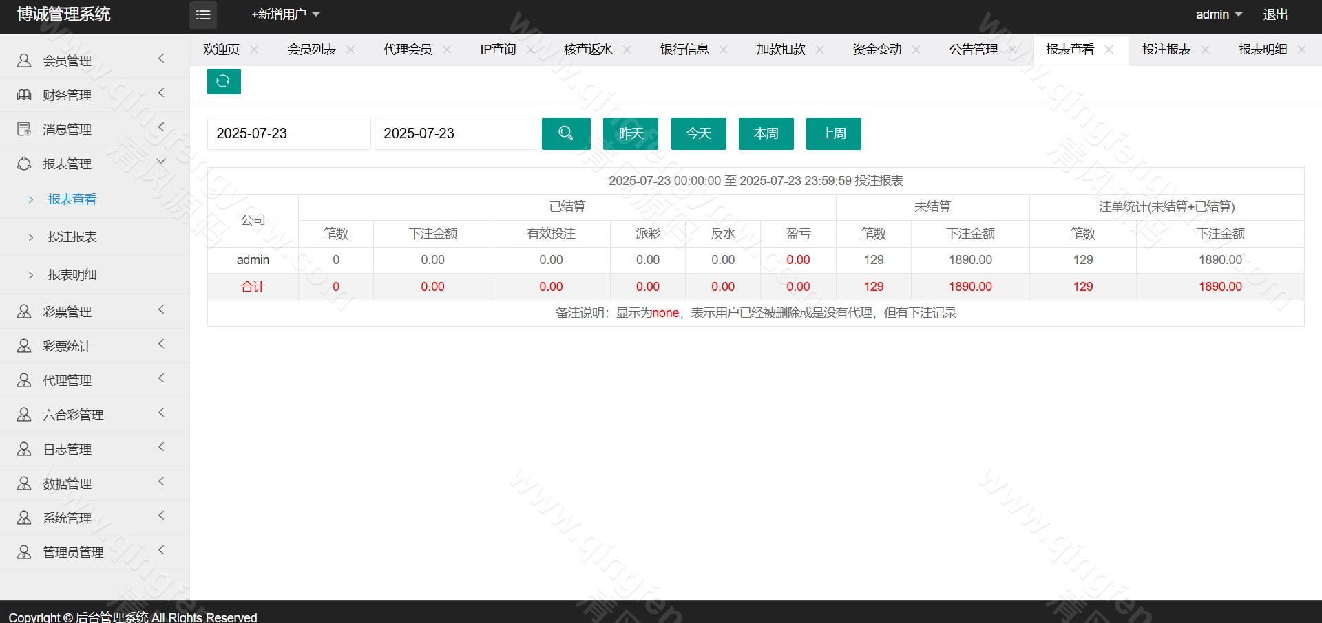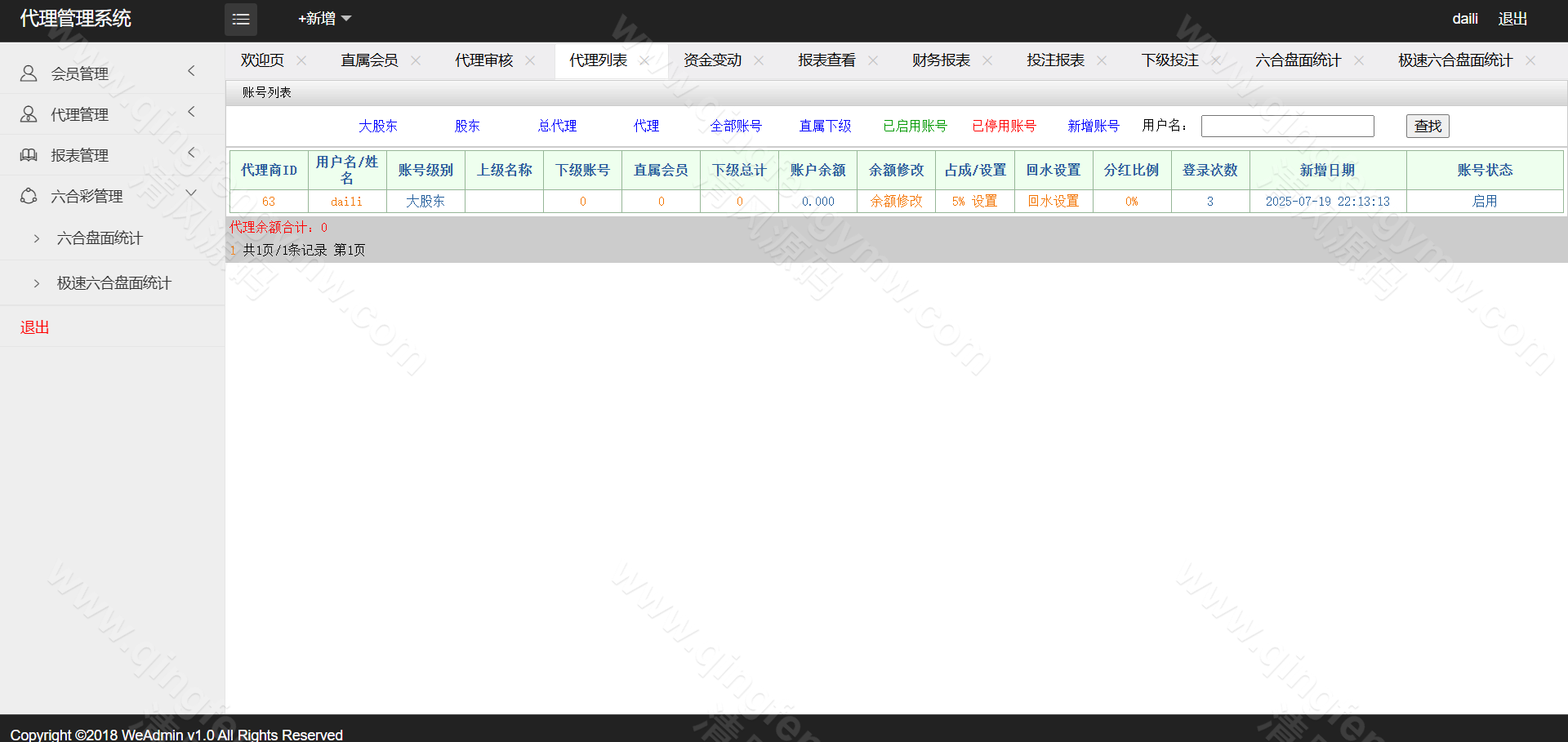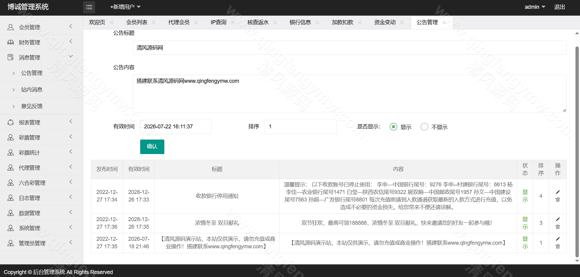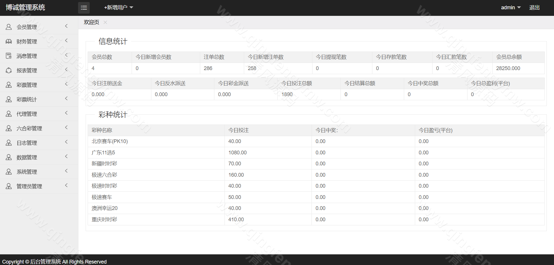 访问后台,配置AB盘开关、各彩种赔率及信用规则。