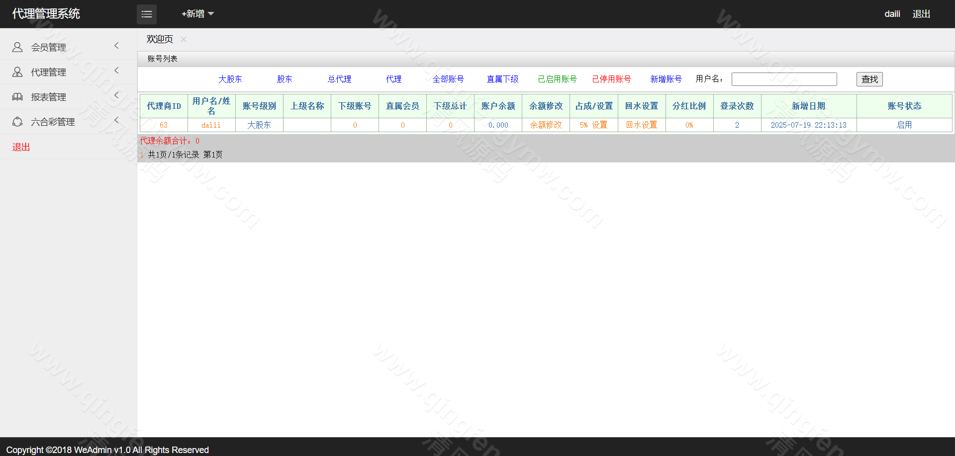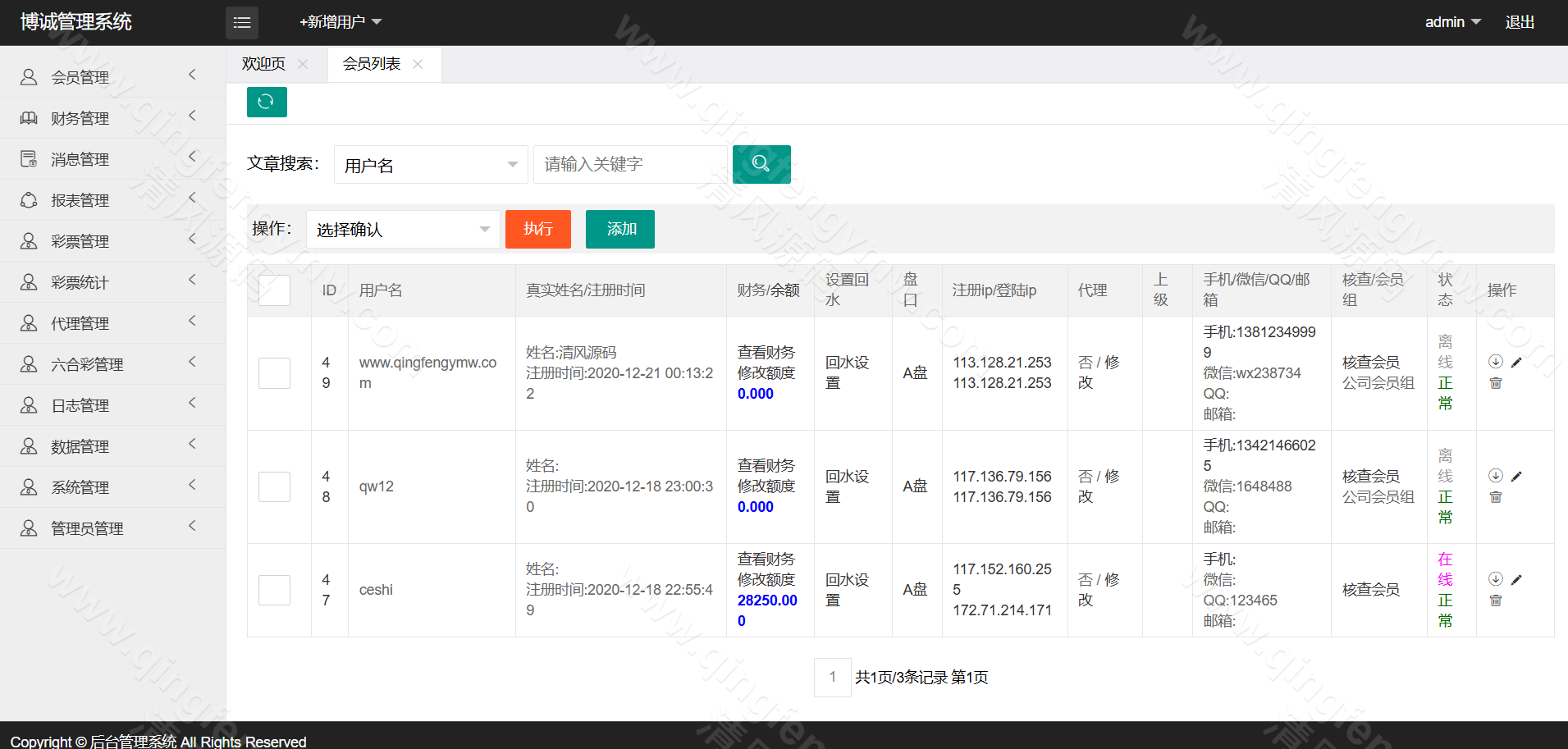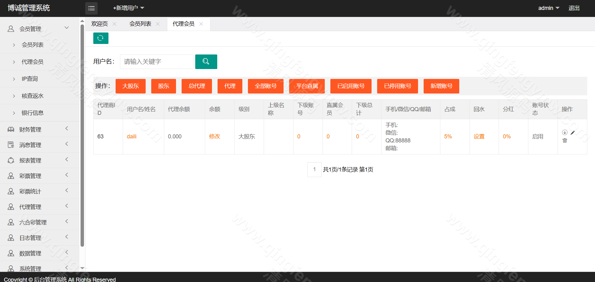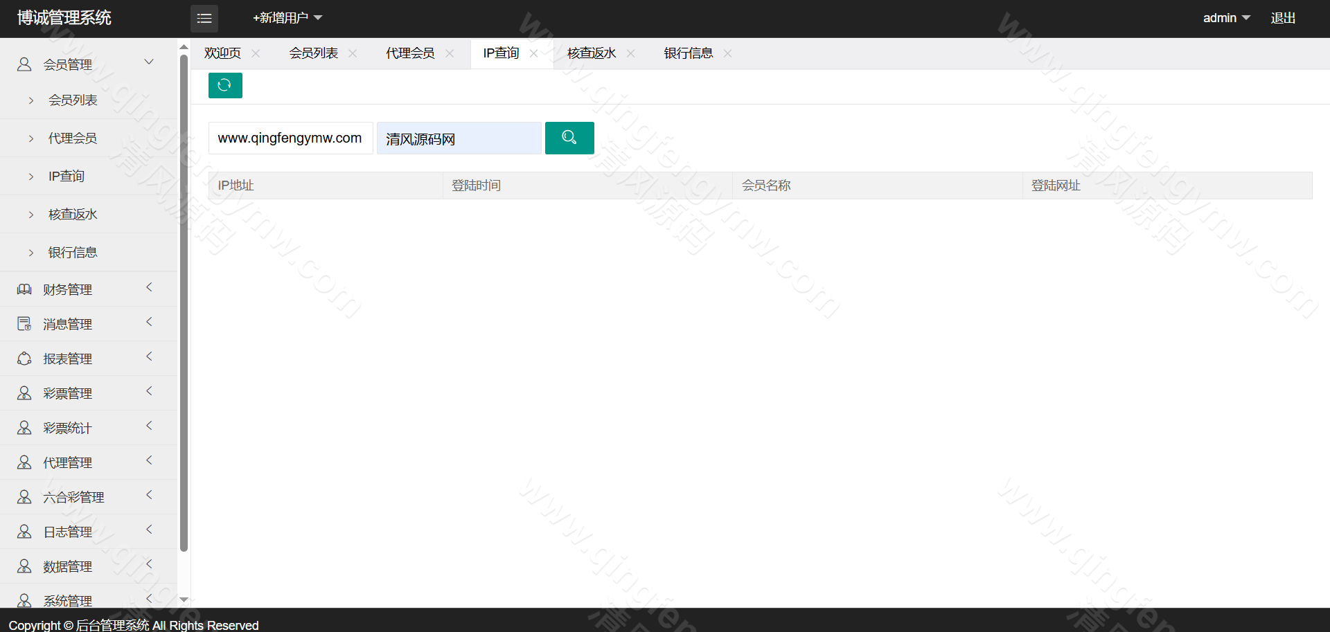 访问后台,配置AB盘开关、各彩种赔率及信用规则。