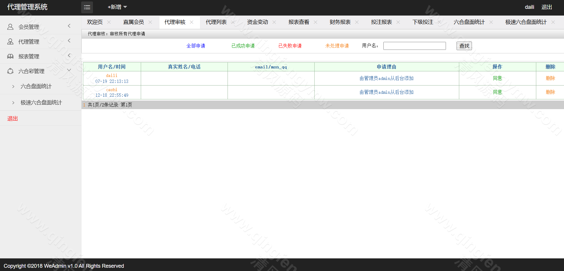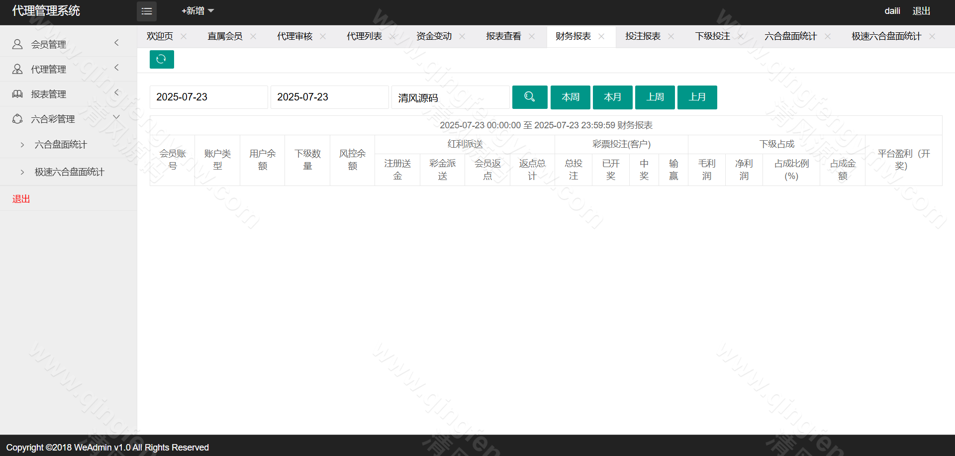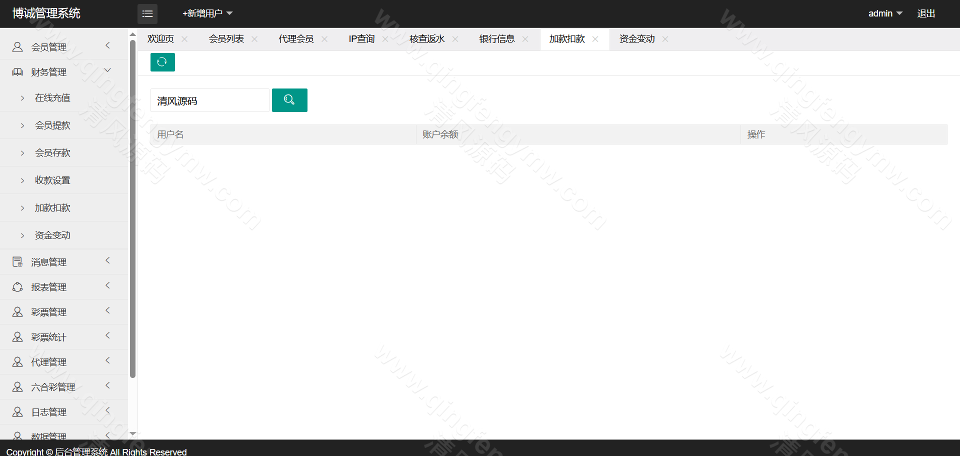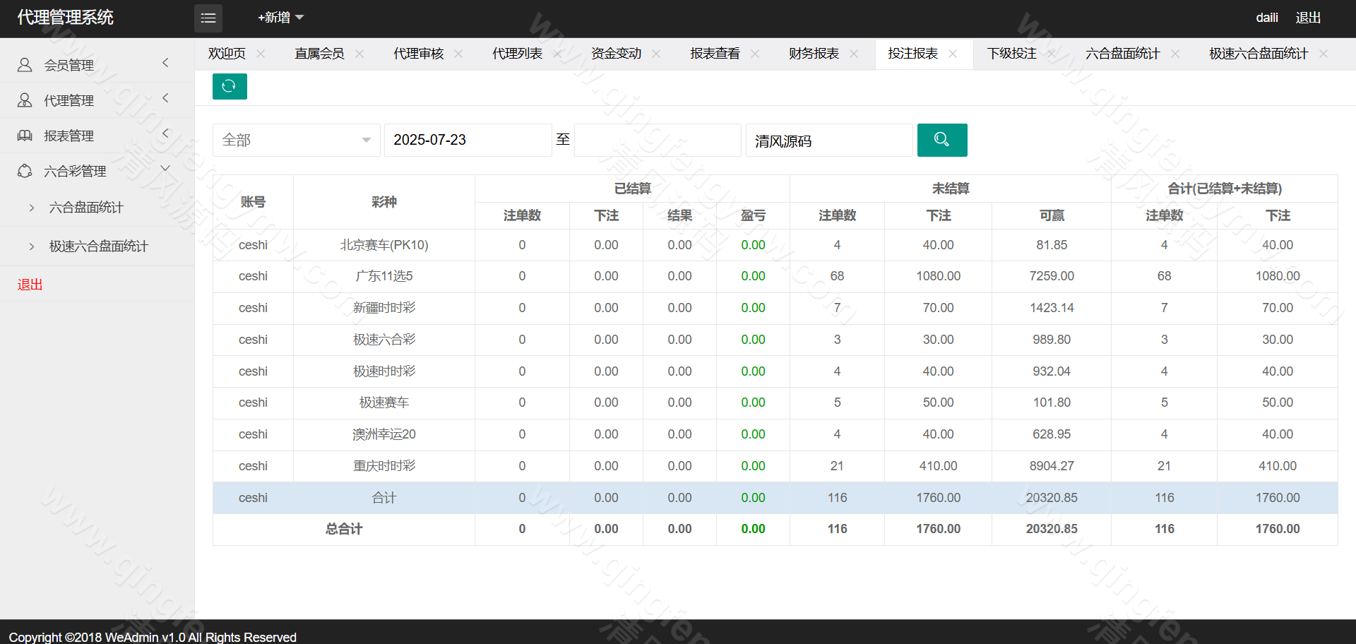信用盘玩法:采用用户与平台对赌的信用模式,支持额度授信、注单管理及自动结算。
