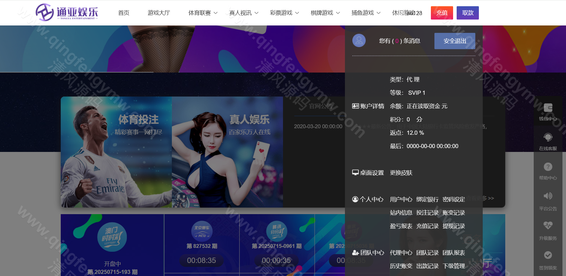 通亚娱乐源码/天恒彩票源码/天恒二开新UI/双玩法盘口/独立代理系统/新增余额宝+幸运大转盘