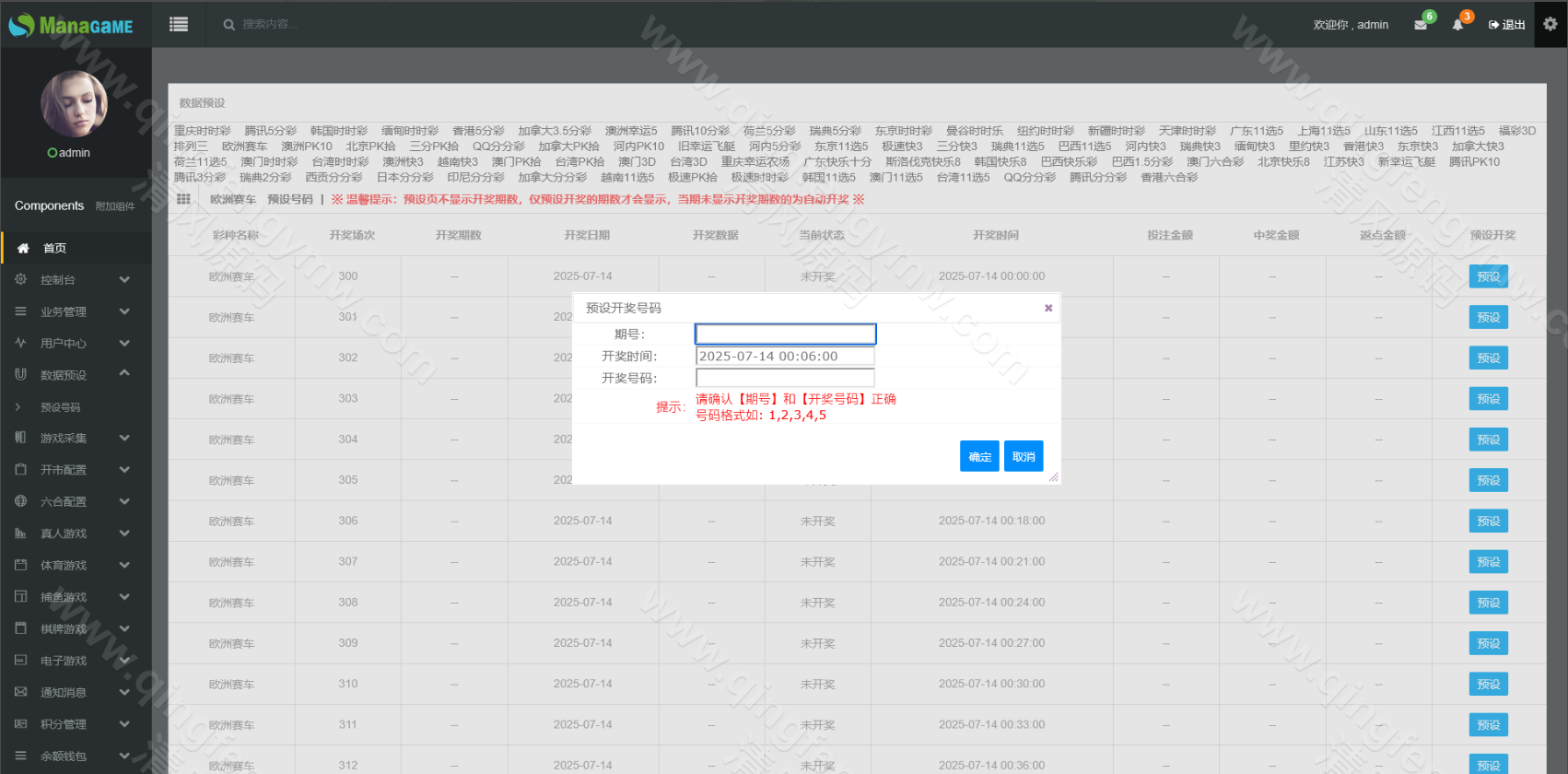 后台管控增强:新增VIP等级管理体系、投注列表多维查询、预设号码管理,并强化了开奖控制、风险干预及数据统计能力,拓展性更强。