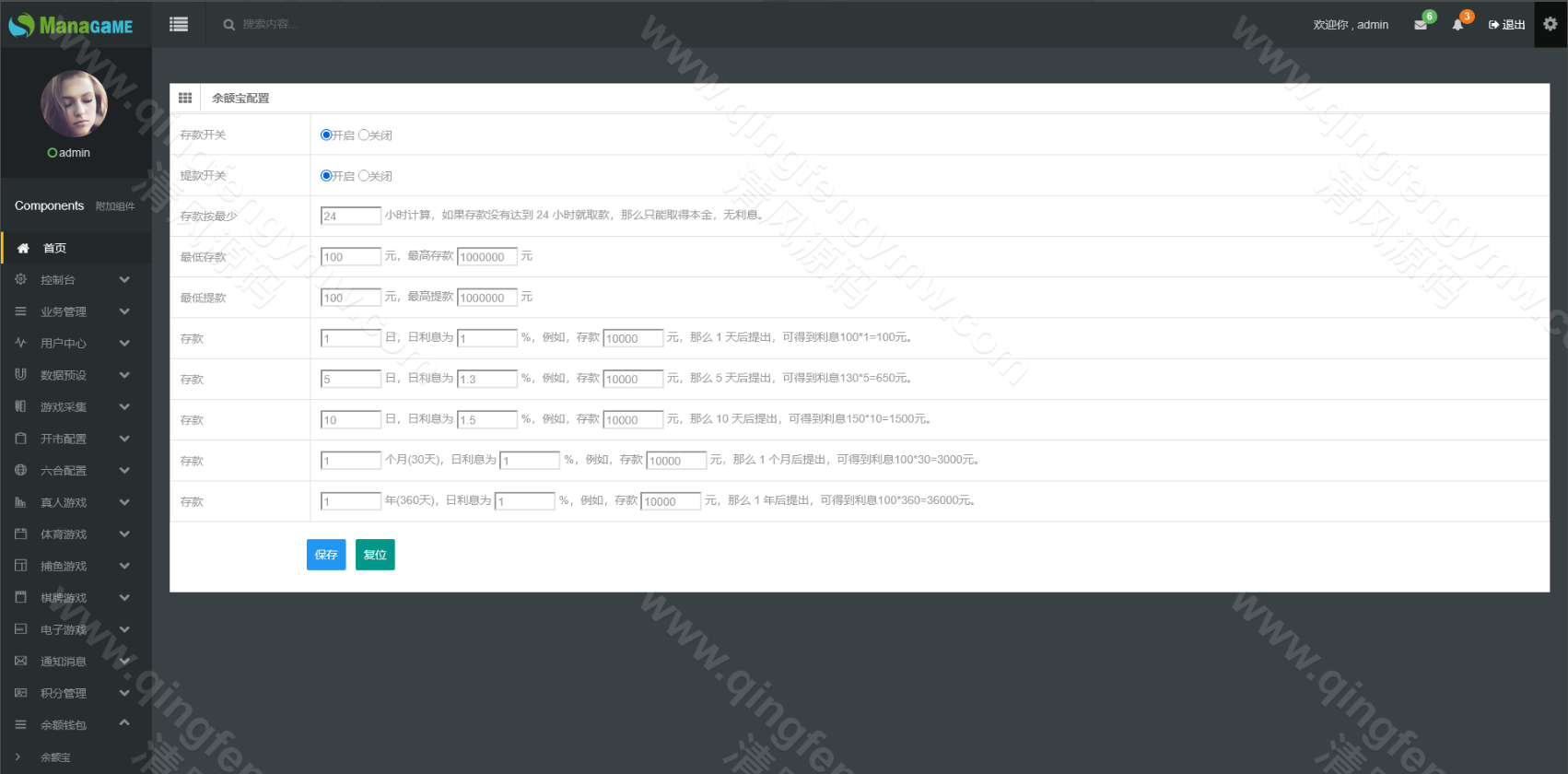 在后台管理面板中,依次配置:支付通道、双玩法开关与赔率、代理分红比例、VIP等级规则、活动参数(如转盘奖品概率)。