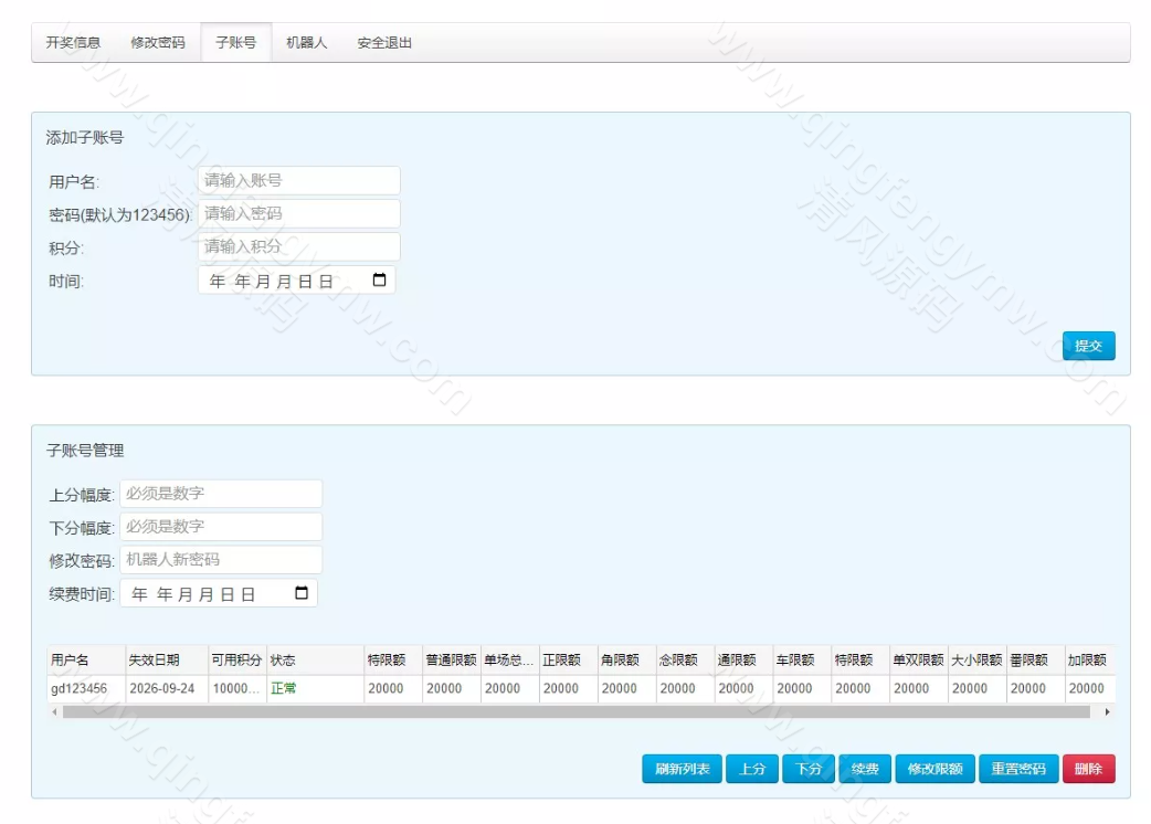无限增加子账号及开房机器人,数据各自独立;