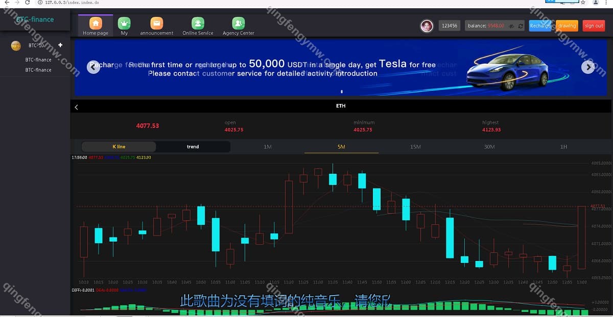 金融化视觉呈现:前端采用专业K线走势图、实时行情报价表及交易面板布局,模拟股票、外汇或虚拟货币交易平台的视觉体验与操作流程。
