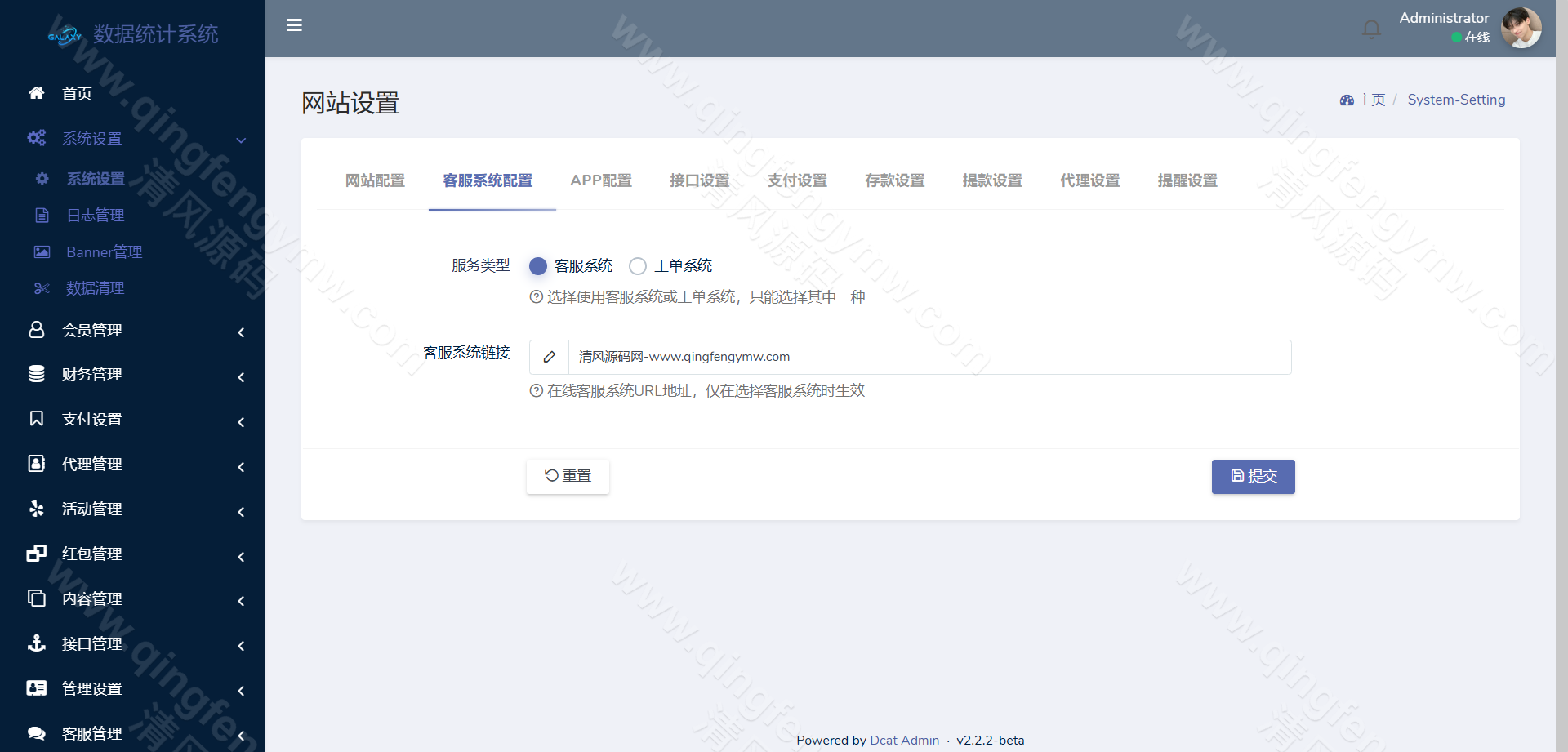 2.新增后台内置工单系统 可后台切换客服/工单
