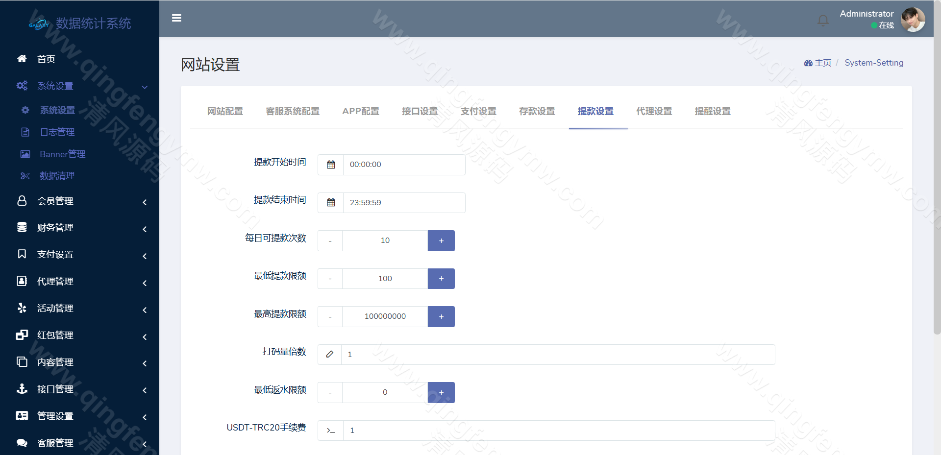 5.增加USDT自动充值回调功能,(使用TRON免费线路/可切换使用申请免费TRC20 API密钥以提高限频)