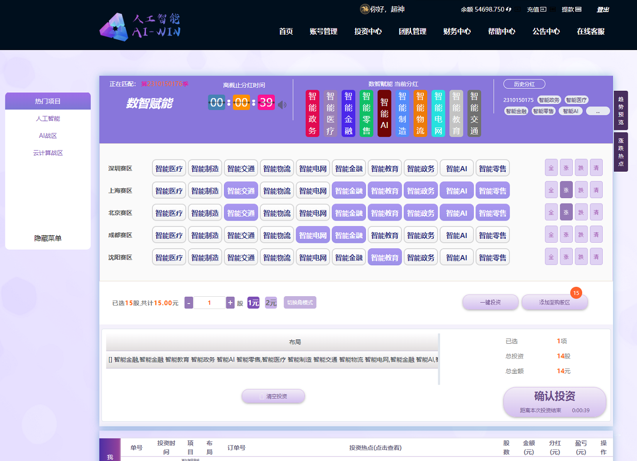 彩票系统二开AI人工智能投资理财系统/项目投资资金盘源码/彩票源码/时时彩源码/完整运营版