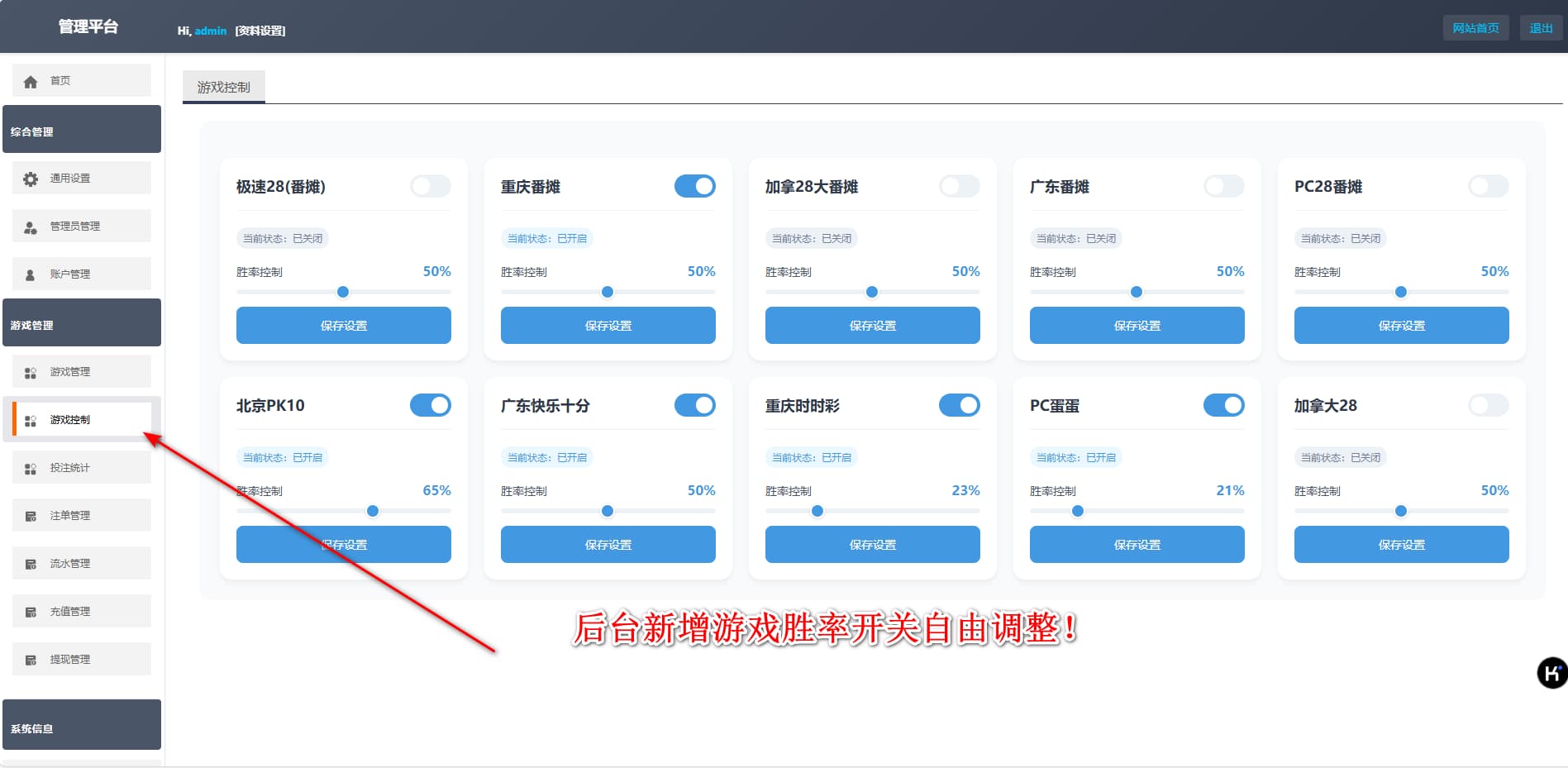 • 模块化控制面板:重新设计的管理界面支持游戏参数配置、数据监控与系统设置的高效操作。