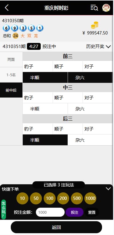 • 实时统计系统:优化后台投注统计模块,提供多维度的数据报表与分析功能。