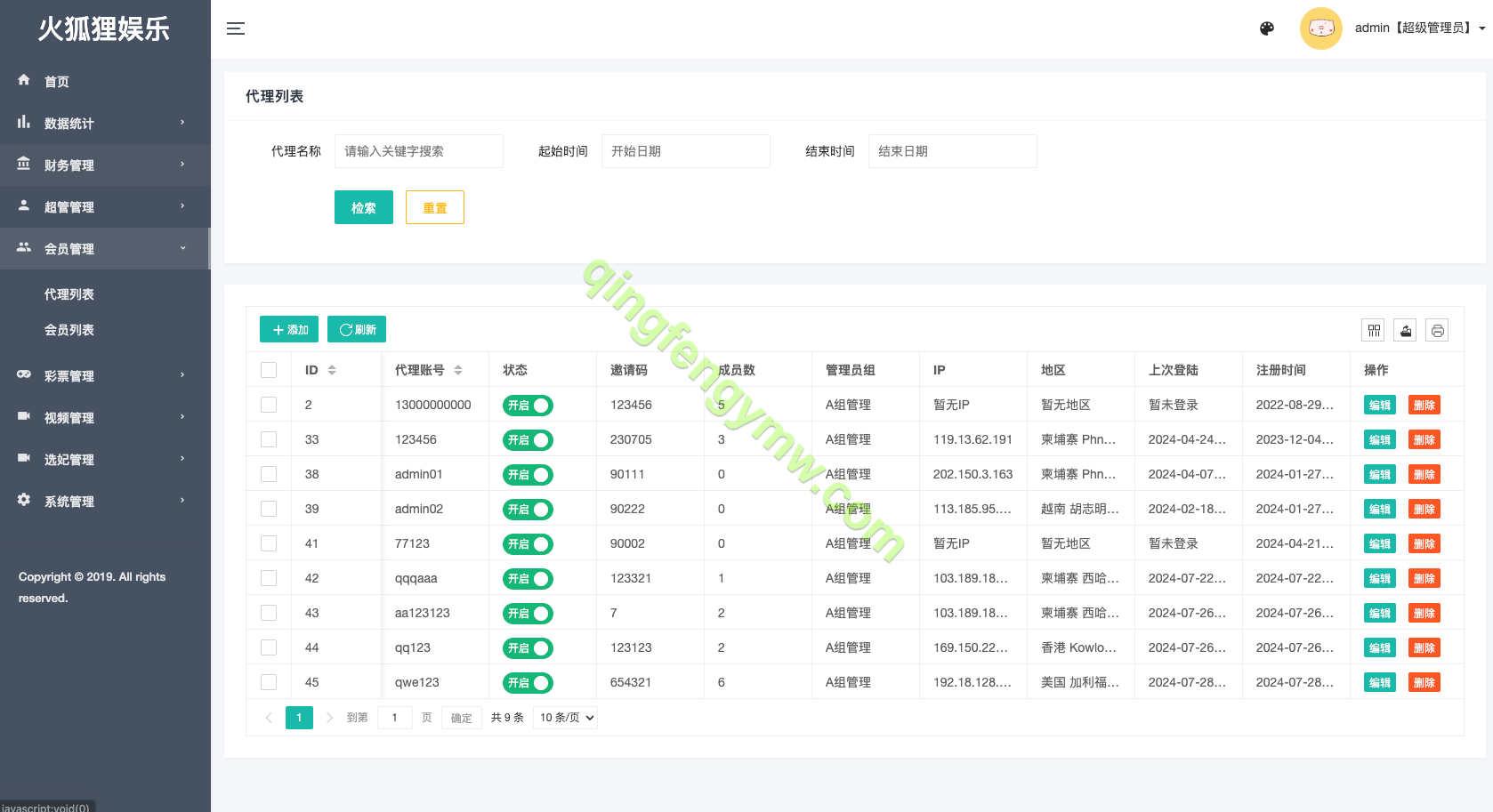 代理管理精细化:优化代理后台权限,现在代理登录后 【仅显示自身下线成员数据】 ,权责清晰,管理方便。