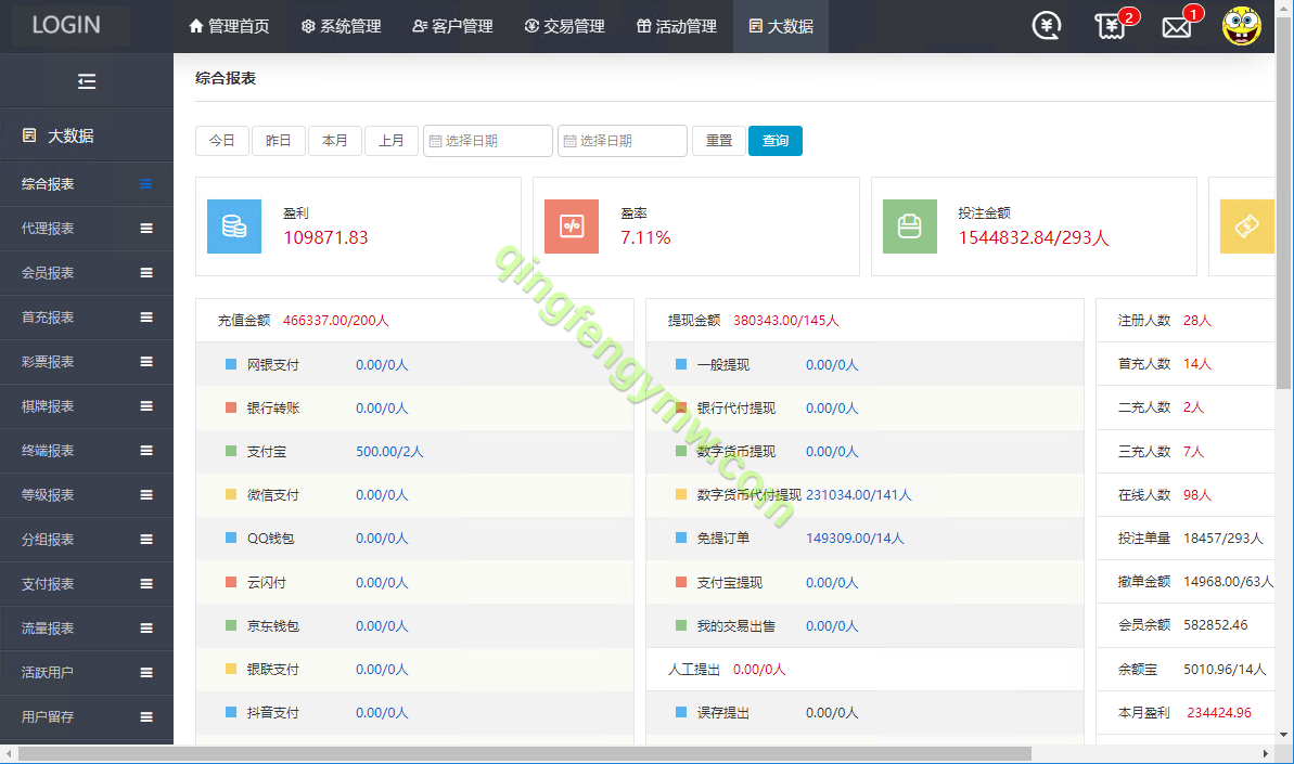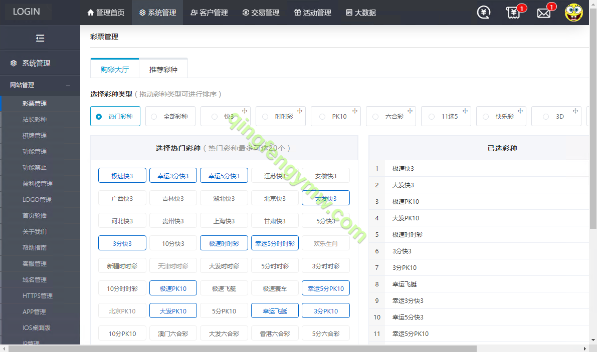 彩种无限扩展:后台提供强大的彩种管理模块,支持自由添加、编辑各类彩票游戏,无任何数量或类型限制。无论是数字彩、乐透彩还是快开彩,均可通过标准化配置快速上线,助力平台轻松丰富游戏库,满足多样化投注需求。