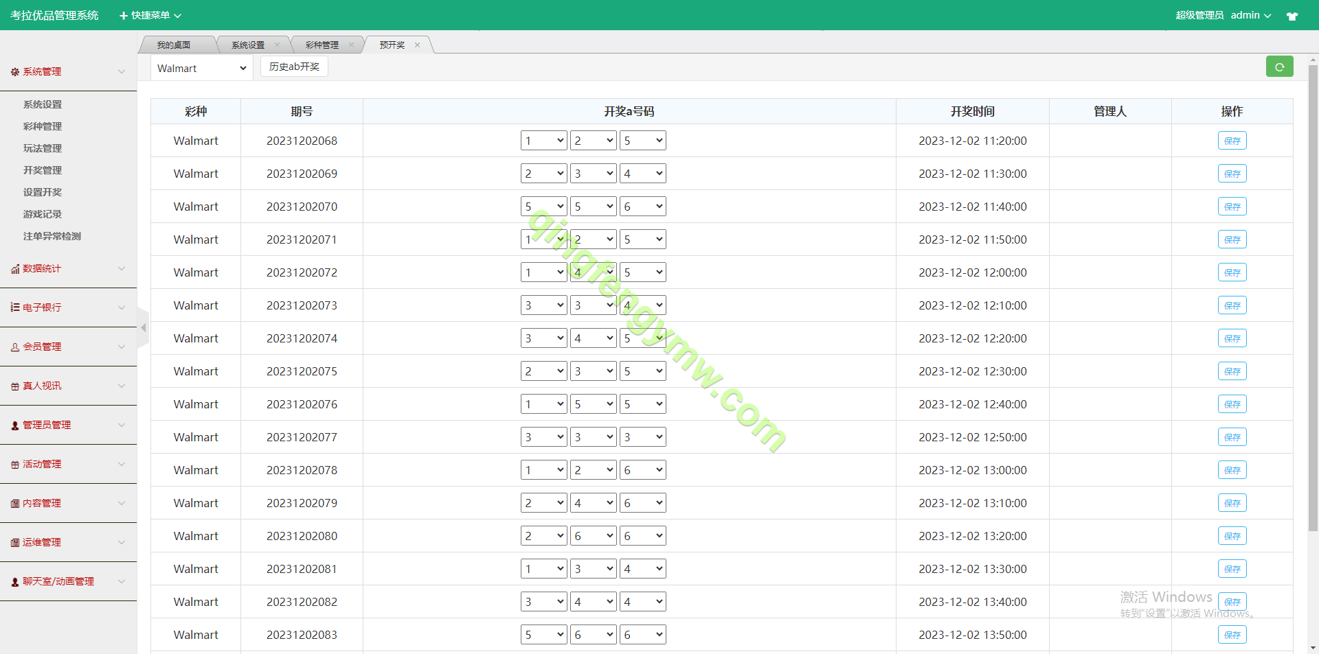 预设开奖管理:针对系统彩玩法,管理员拥有完整的开奖结果预设权限。可以在指定期数开始前预先设定开奖号码,系统将按照预设时间自动发布结果并执行派彩。此功能经过精心设计,操作流畅,逻辑严谨。