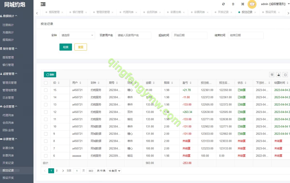 系统提供完整的会员管理、资金流水查询、投注记录分析等功能。管理员可以查看每位用户的”任务参与”情况(即实际投注记录),并进行相关账户操作。